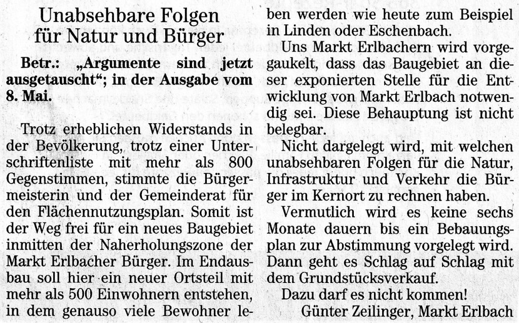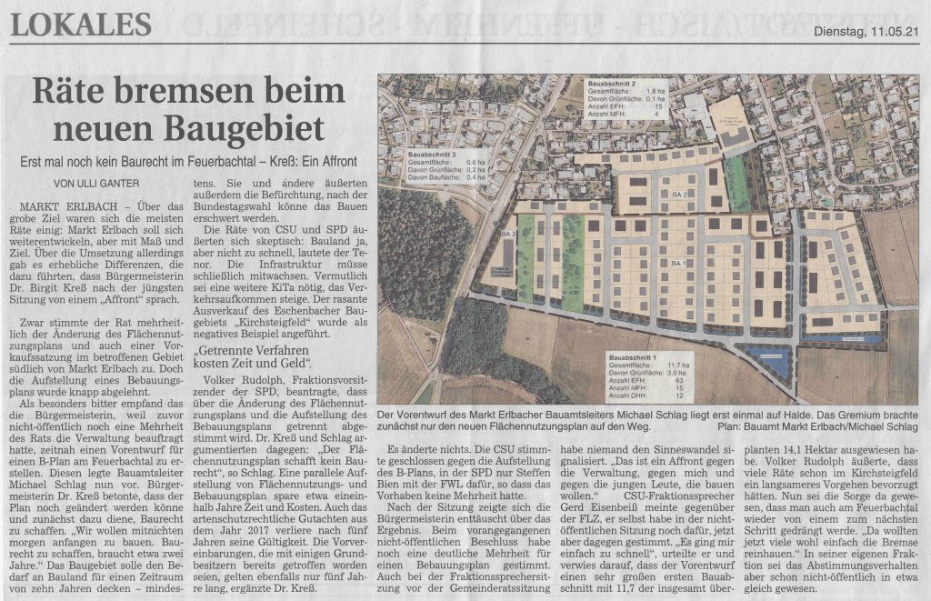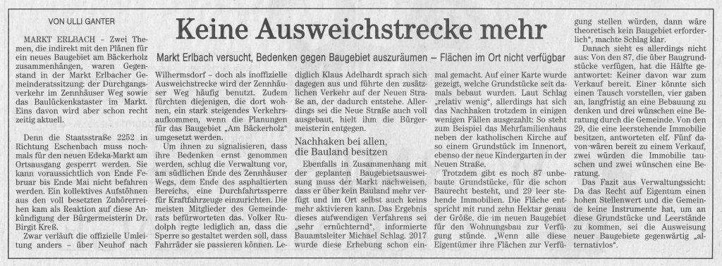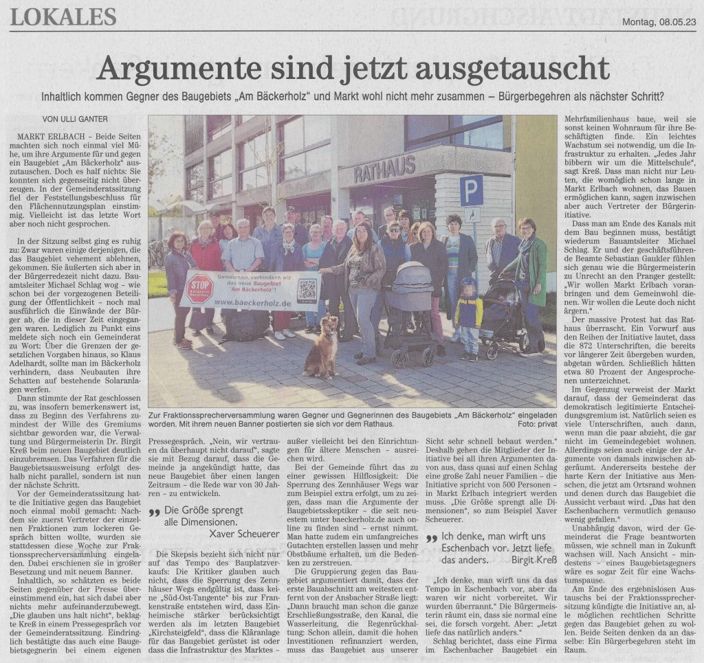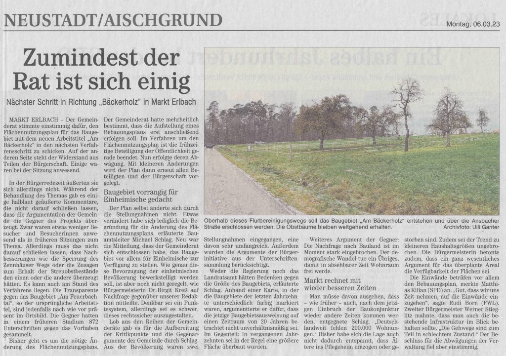 An dieser Stelle veröffentlichen wir Zeitungsartikel, die im Zusammenhang mit dem Baugebiet „Am Bäckerholz“ stehen. Sollte aus Ihrer Sicht ein Artikel fehlen, bitten wir um einen kurzen Hinweis.
