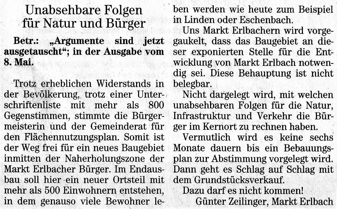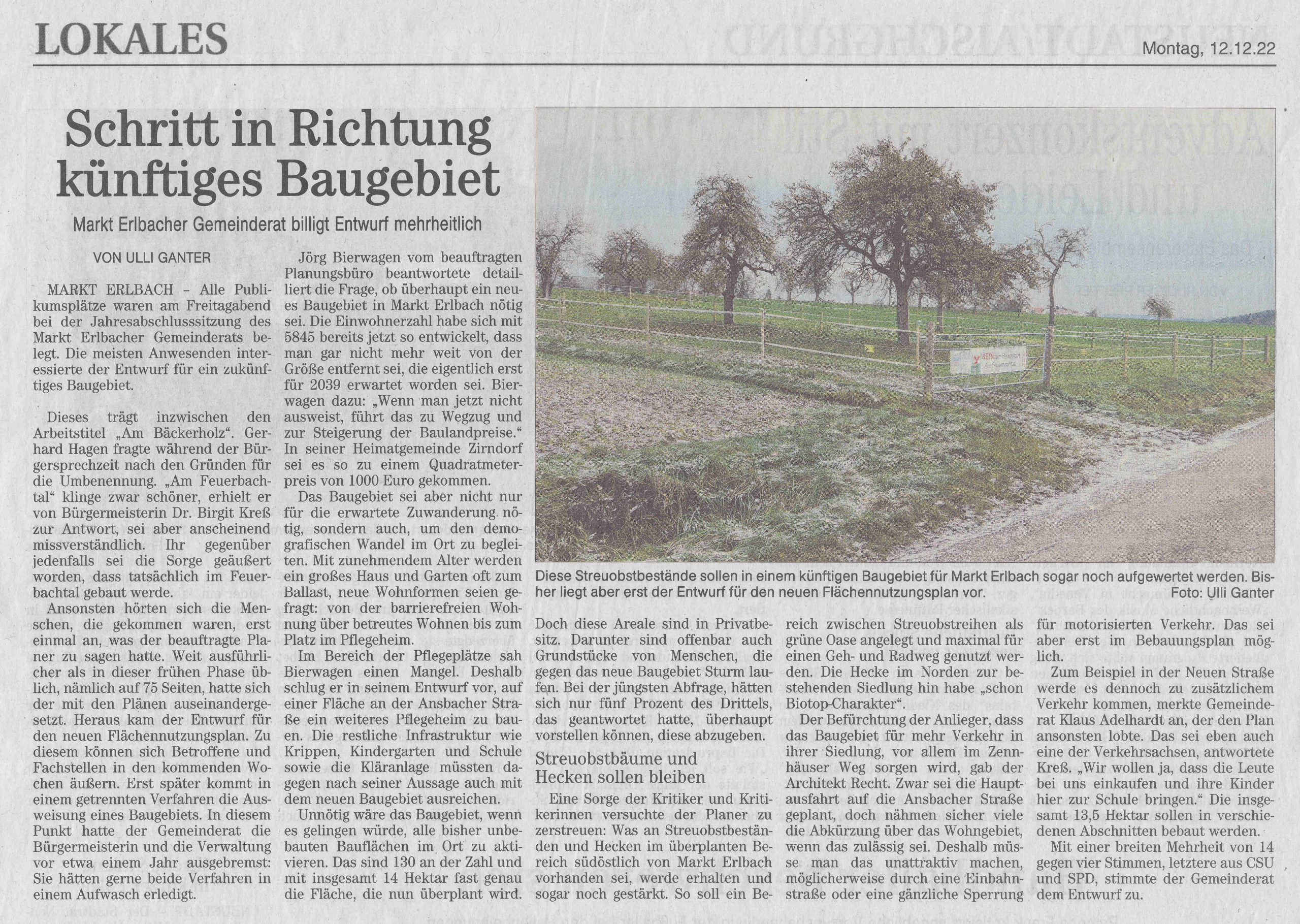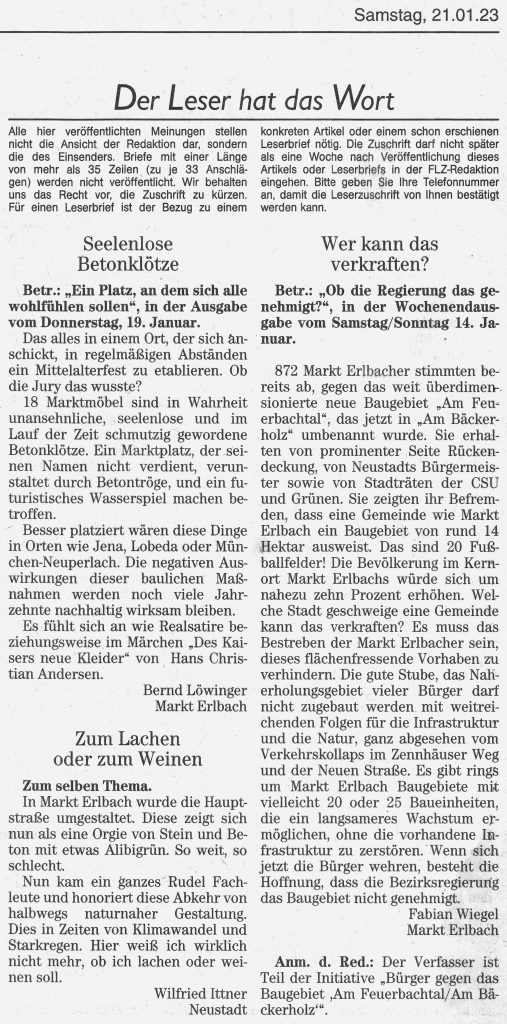 An dieser Stelle veröffentlichen wir Zeitungsartikel, die im Zusammenhang mit dem Baugebiet „Am Bäckerholz“ stehen. Sollte aus Ihrer Sicht ein Artikel fehlen, bitten wir um einen kurzen Hinweis.